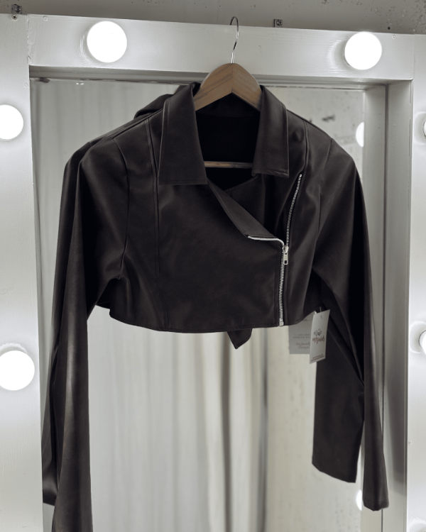 Campera engomada Cruzada con Cierre Marrón