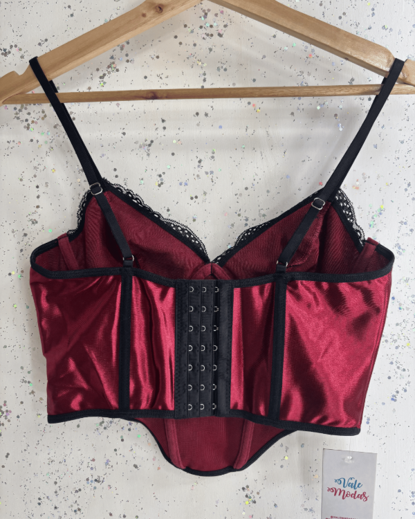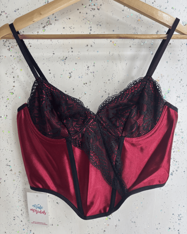 Corset de satén con tiras regulables y 3 posiciones en la espalda.