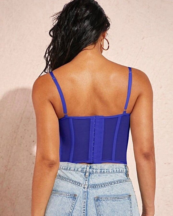 Corset de encaje con tiras regulables y 3 posiciones en la espalda. Taza chica.