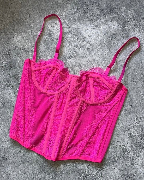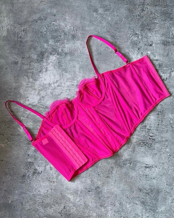Corset de encaje con tiras regulables y 3 posiciones en la espalda. Taza chica.