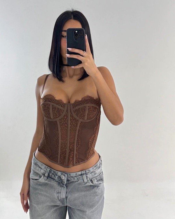 Corset de encaje con tiras regulables y 3 posiciones en la espalda. Taza chica.