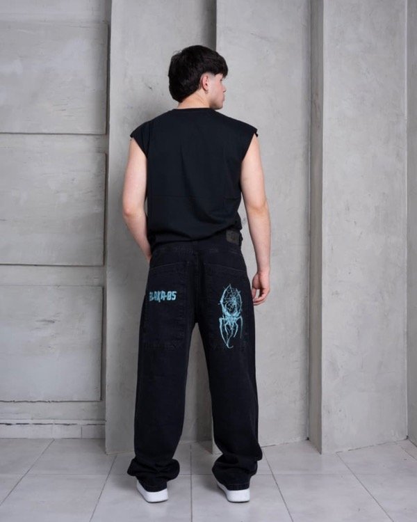 Jean Baggy Bordado Celeste