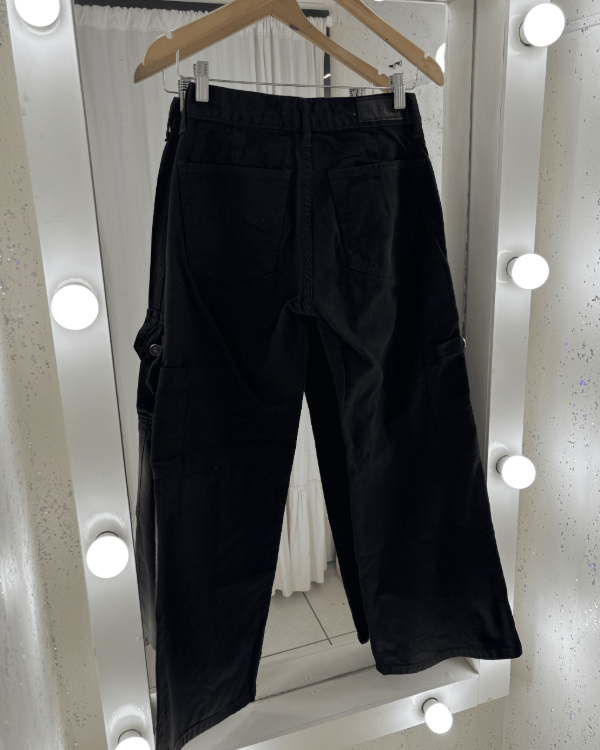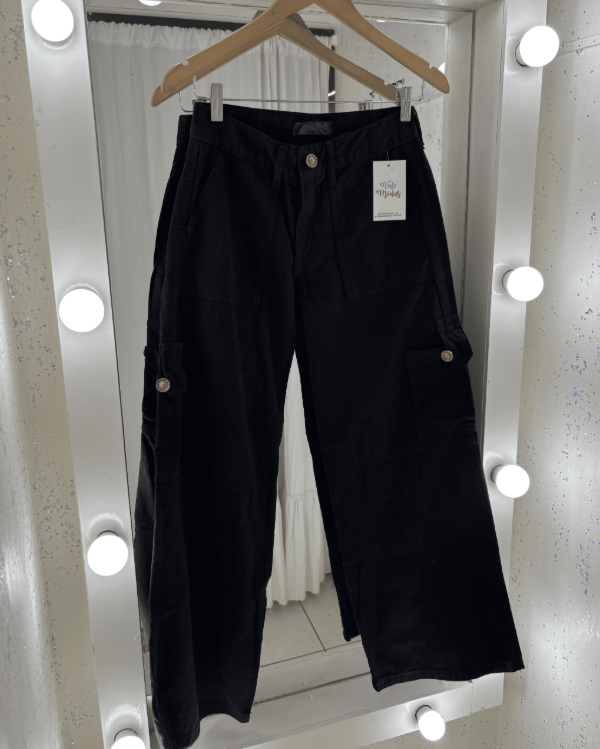 Jean Wide Leg con Bolsillos Botón Negro