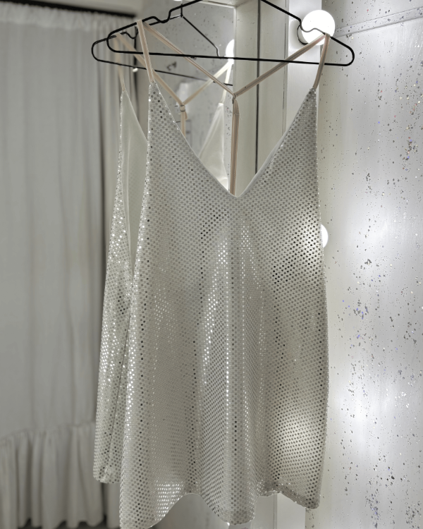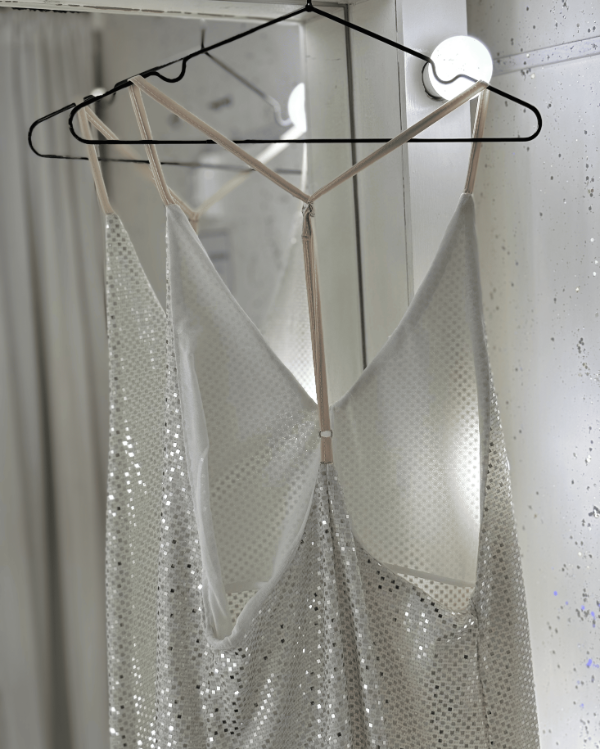 Vestido Brillo Espalda Descubierta Blanco